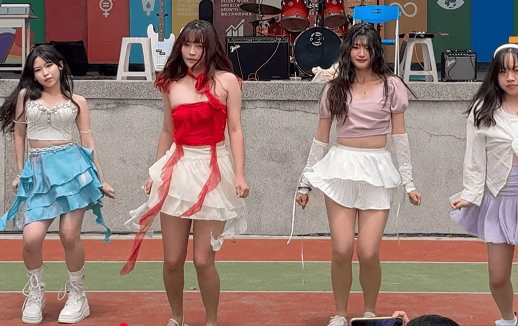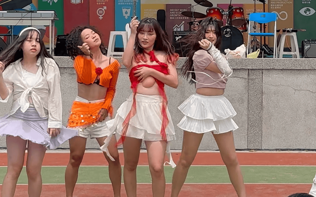 5人組台湾JKのダンス動画ですが、今回注目していただきたいのは赤い衣装を着用した子です。ダンス開始時から、なんだか怪しそうな、いかにもずり落ちそうな衣装だなと思い視聴していました。そして1:07に差し掛かったところです。何やら急に胸元を押さえ、なんだか恥ずかしそうな様子!どうやら衣装がずり落ちてきてしまったようで、その後もひたすら胸元を気にして踊っていました。