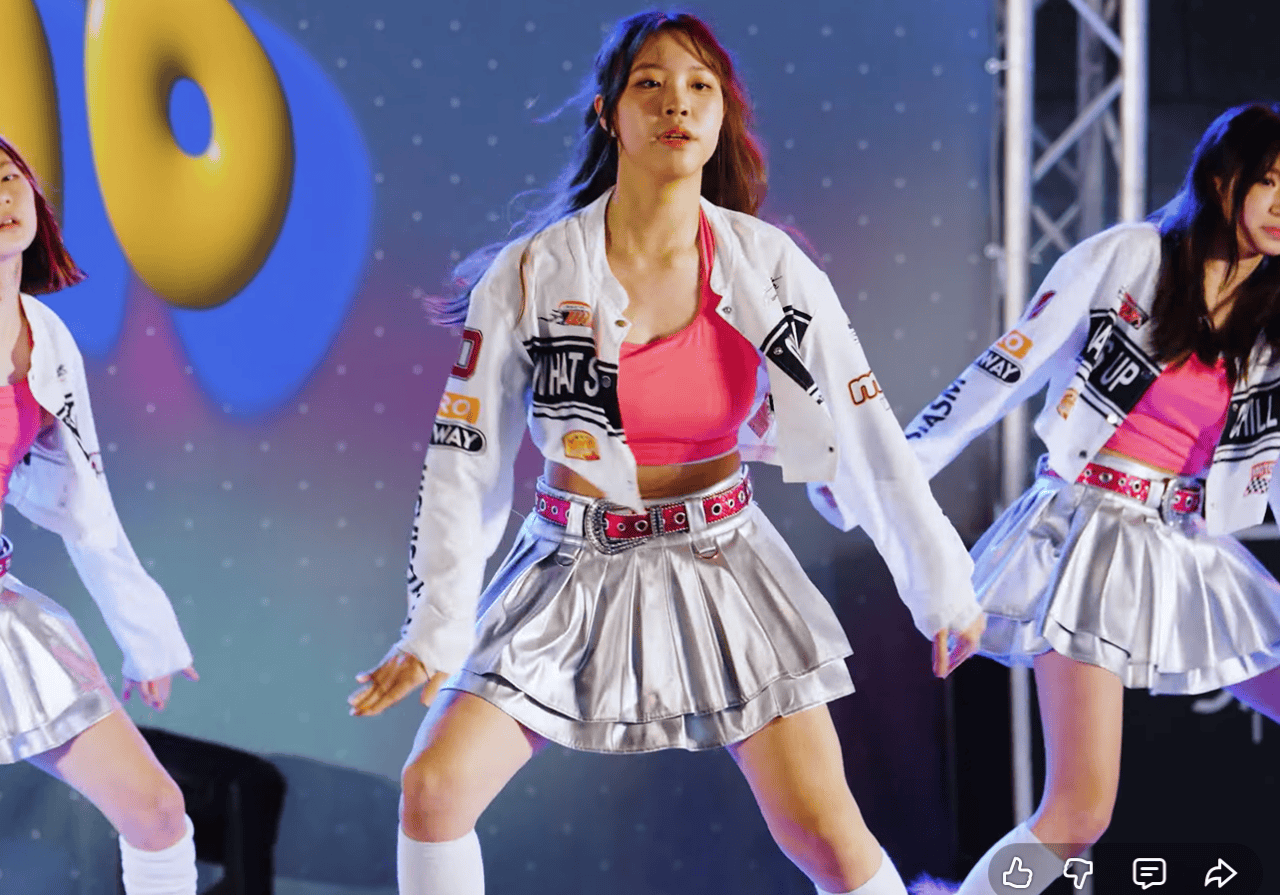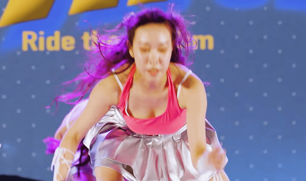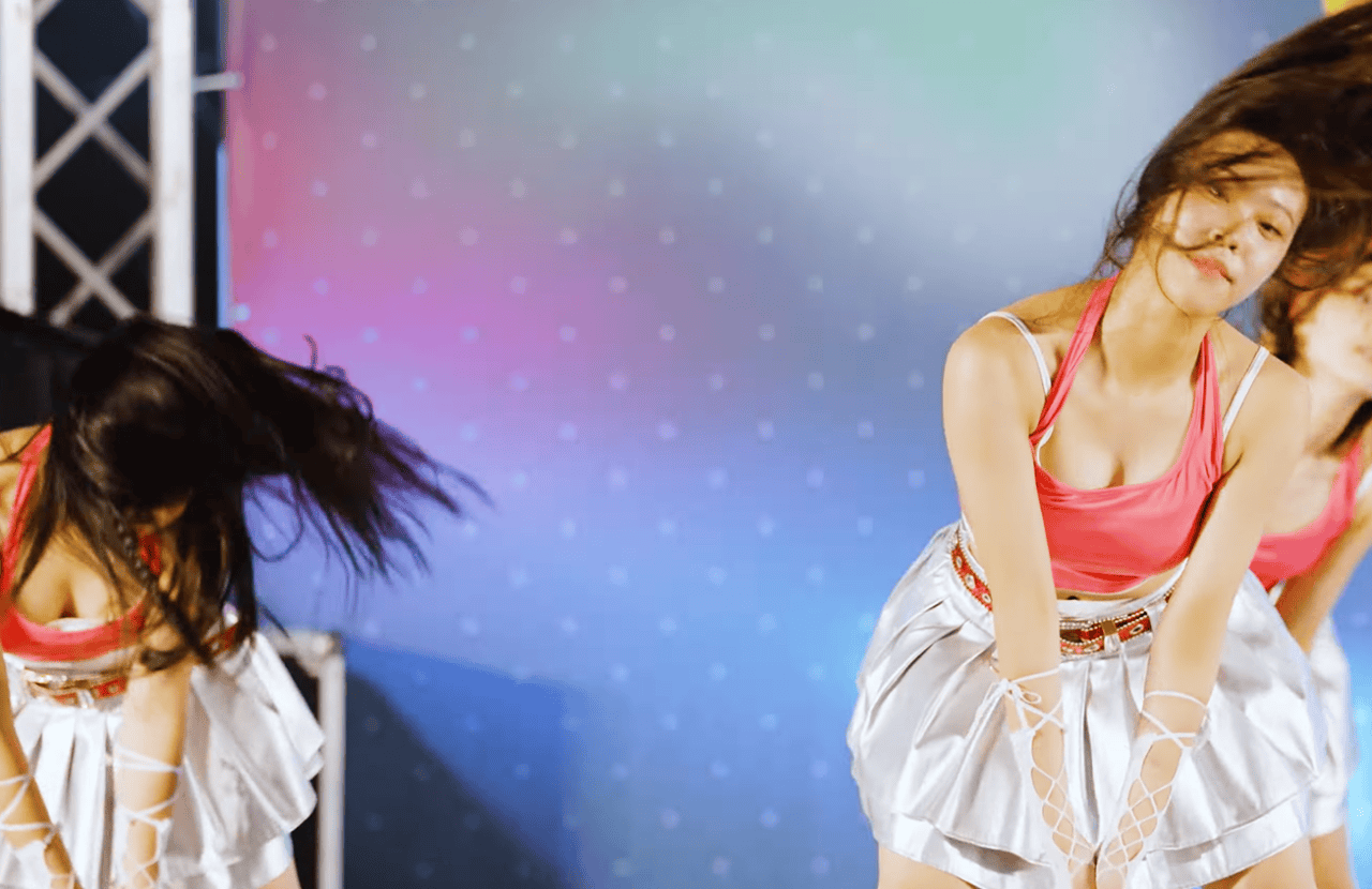 そして彼女、なんといっても乳がデカい!衣装の中でタプンタプンと揺れるおっぱい、衣装からはみ出る乳肉、最高です。最初はジャケットを着ていましたが、ダンス後半でジャケットを脱ぎタンクトップ一枚に!これぞ台湾名物です。ジャケットは脱ぐために着用しているといっても過言ではありません。しかしながらですね、タンクトップを着ているにも関わらず、なかなかどうして胸チラ見られないのが残念でした、、、それでも何とか数場面はありましたので、写真でご確認ください!
