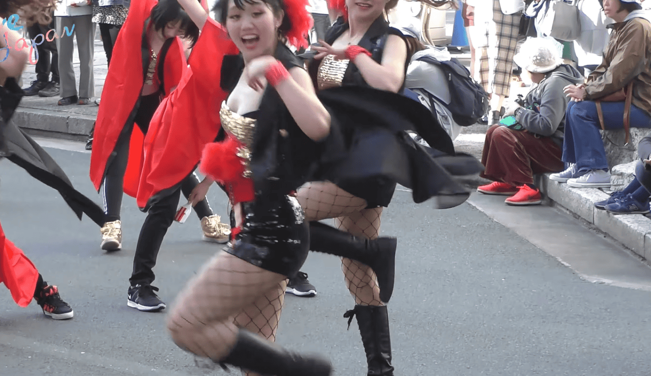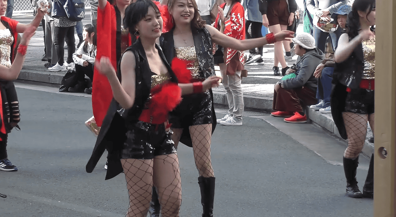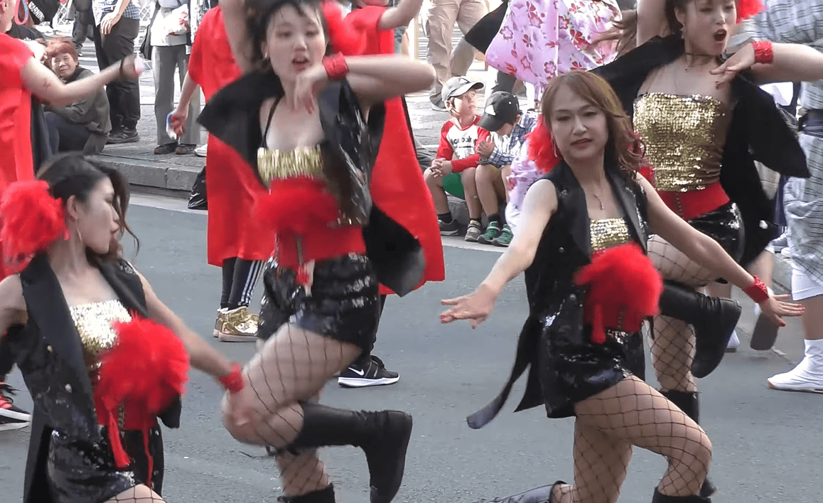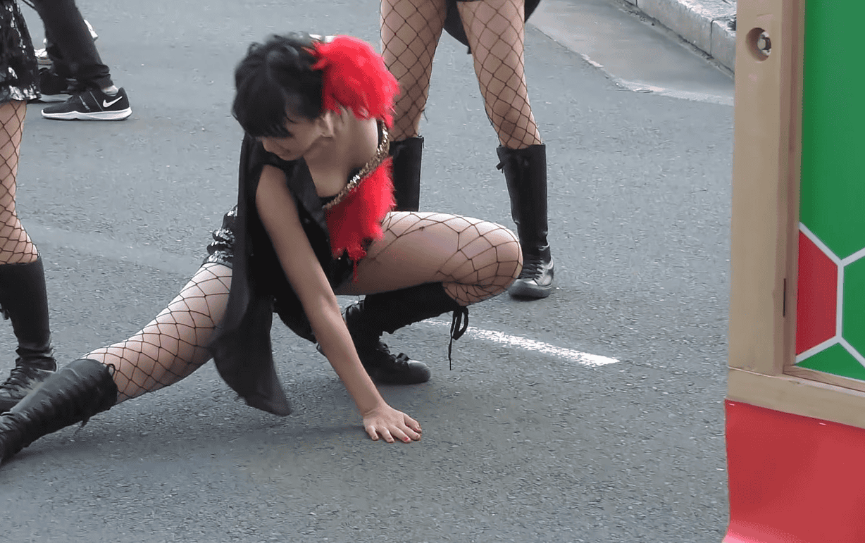 写真に写っているお姉さん、いかがでしょうか。元気そうなスレンダーちゃんですが、ダンス初盤からもう衣装がずり落ちています。そして黒いブラジャーがはみ出しちゃっています!当の本人は気にも留めていない様子で、遠慮なくジャンプしたり前かがみになったり、ちっとも焦っていなさそうです。