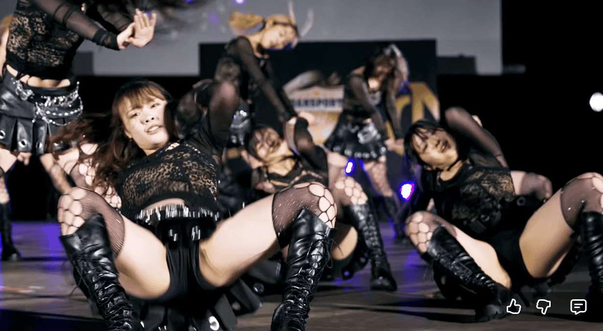 さて、今回の見所ですが、なんといってもダンス後半の開脚シーンです。デカ尻と食い込みまくりの黒パンを拝むことができます!胸チラもほんの少し見られますが、今回はそんなことより彼女たちの下半身です!ダンスが終わったあとの汗ムンムンのこのデカケツに顔をうずめたい!!!みたいな欲望が湧き出てくるくらいエロいです。繰り返しますが、日本のJDダンスでこんなシーンはなかなか見ることができません。ぜひとも皆さん、彼女たちの躍動するデカ尻開脚ダンスを実際の動画でご覧ください。