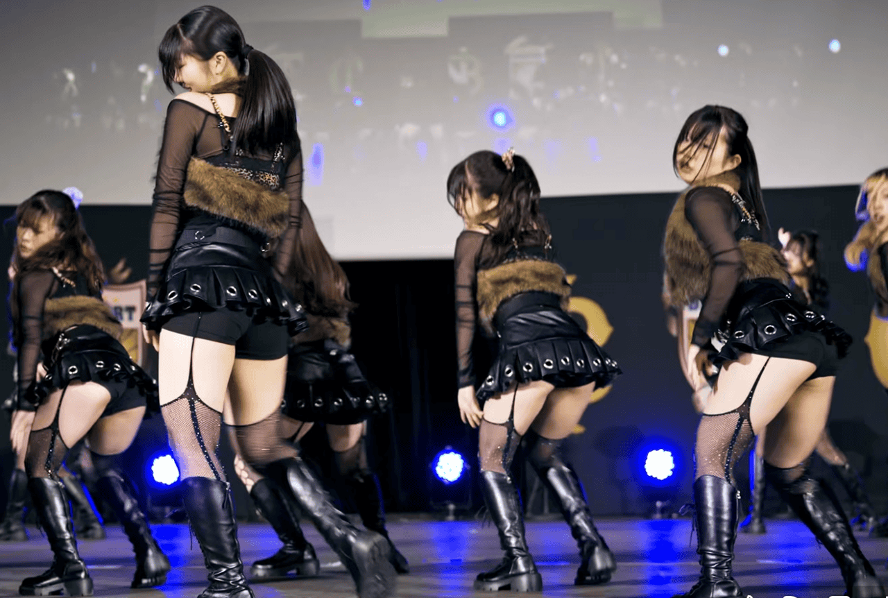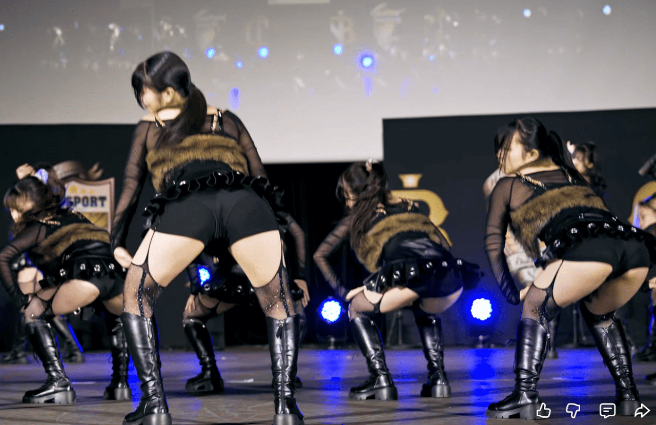 某大学ダンスサークルの女の子たちですが、その衣装がとにかくエロい!身近過ぎるスカートに網タイツを着用した、台湾JDにも負けず劣らずのエロ衣装です。その衣装を活かしたエロい振り付けも相まって、日本のJDダンスでは稀に見るセクシーさとなっています。それでもって、やはりJKとは違いますね。ブリンブリンの肉付きが素晴らしいデカ尻とムッチムチの太もも、カラダが成熟してエロさムンムンな、これぞJDといったカラダです!