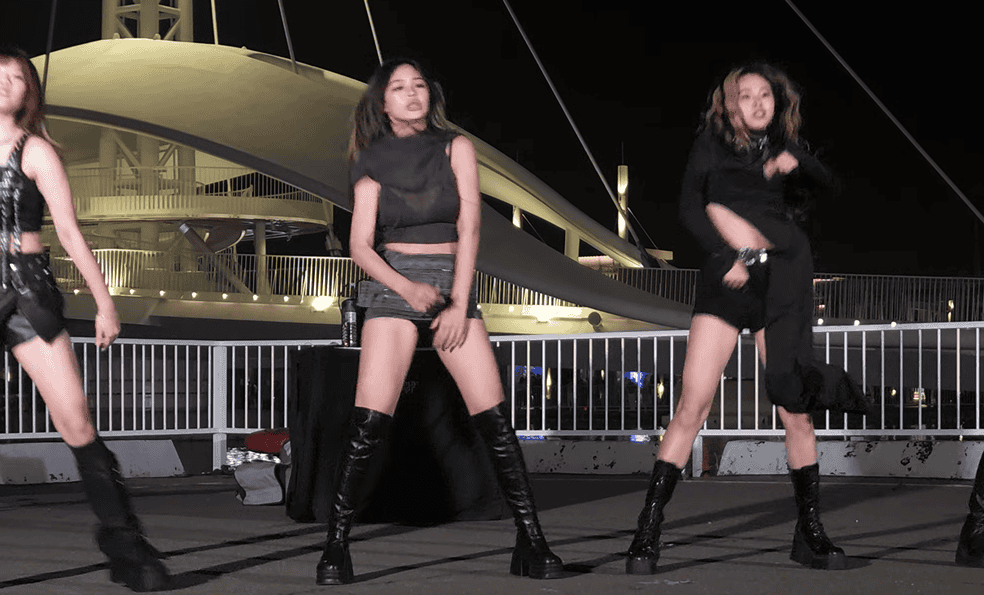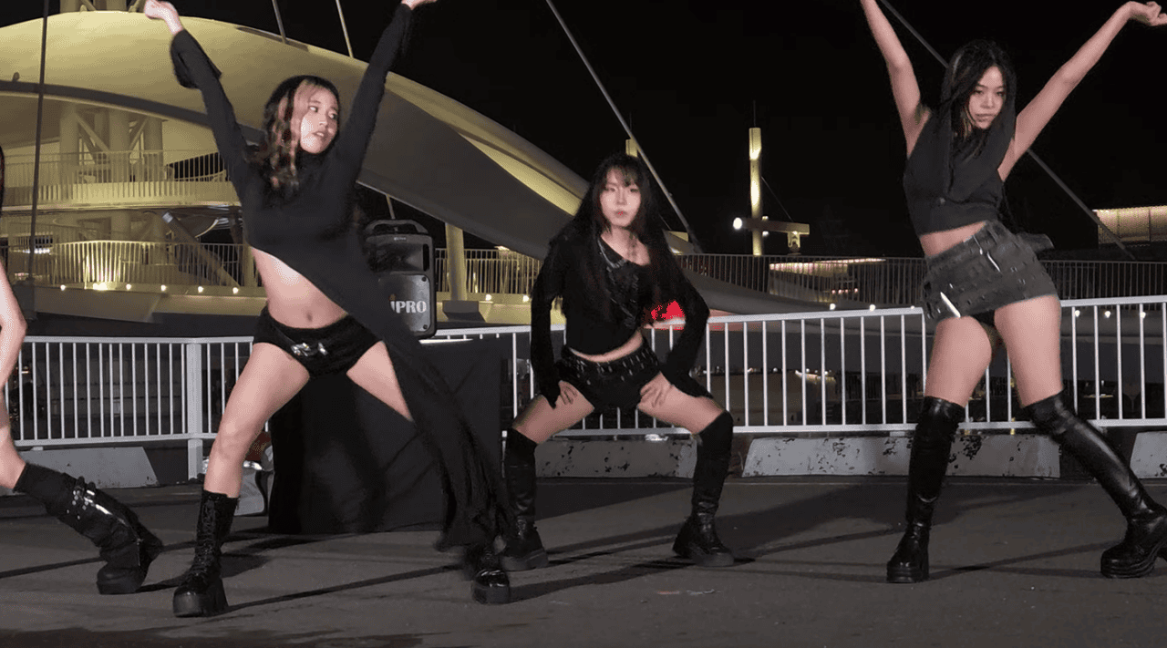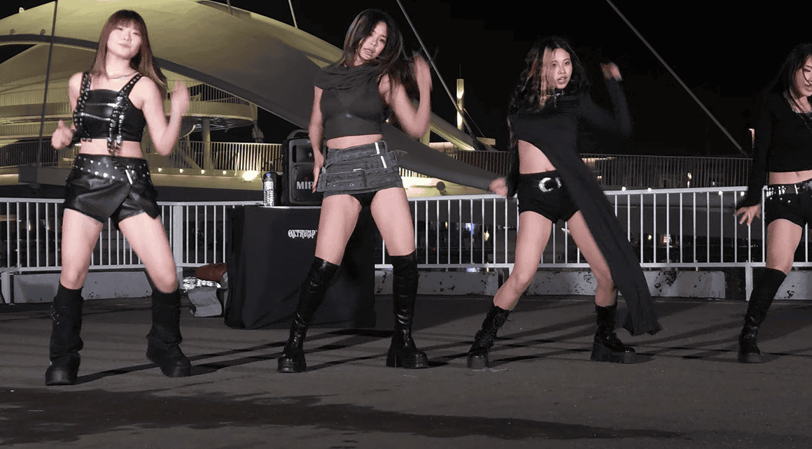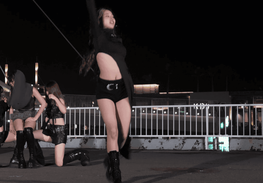 台湾JK四人組のダンスになりますね。そして今回注目していただきたいのは、写真一枚目右から二番目のストールを巻いている女の子と左端の金髪交じりの女の子です。金髪交じりの女の子ですが、なかなか変わった衣装を着用していますね。お腹丸出しで万歳をしたときなど胸下ギリギリまで見えちゃっています!肝心なところは見えませんが、なかなかセクシーですよ。そして、ホットパンツから白い下着パンツがチラリしちゃってました!一瞬ですがパンチラ頂きです!