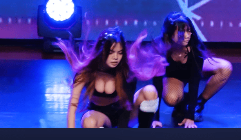 四人組のダンスグループになりますが、一人胸元ががっつり空いた女の子がいますね。彼女がとってもセクシーでエロい!モデルのような涼しげな眼もと、アンニュイでクールな表情、それなのに胸元はガッバガバで谷間がチラリしまくり!JKとは思えないセクシーさで、エロいというより芸術的ですらあります。