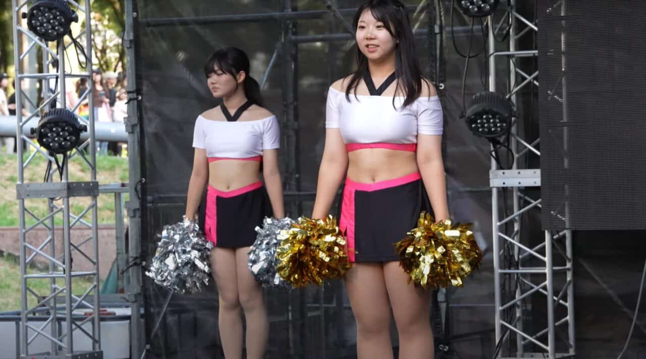 今回紹介する動画はこちら①、こちら②です。おそらくJC~JKで構成されたチアリーディングダンスチームですが、その衣装が素晴らしい!ピッチピチでみっじかみじかです!スカートがね、短イイんですよ!これはいかんですね、Youthチームとありますが、ちょーっと官能的すぎるんではないでしょうか。Tシャツの方もこれでもかってくらいピッチピチで、もう形が丸っわかり!眼福です、、、