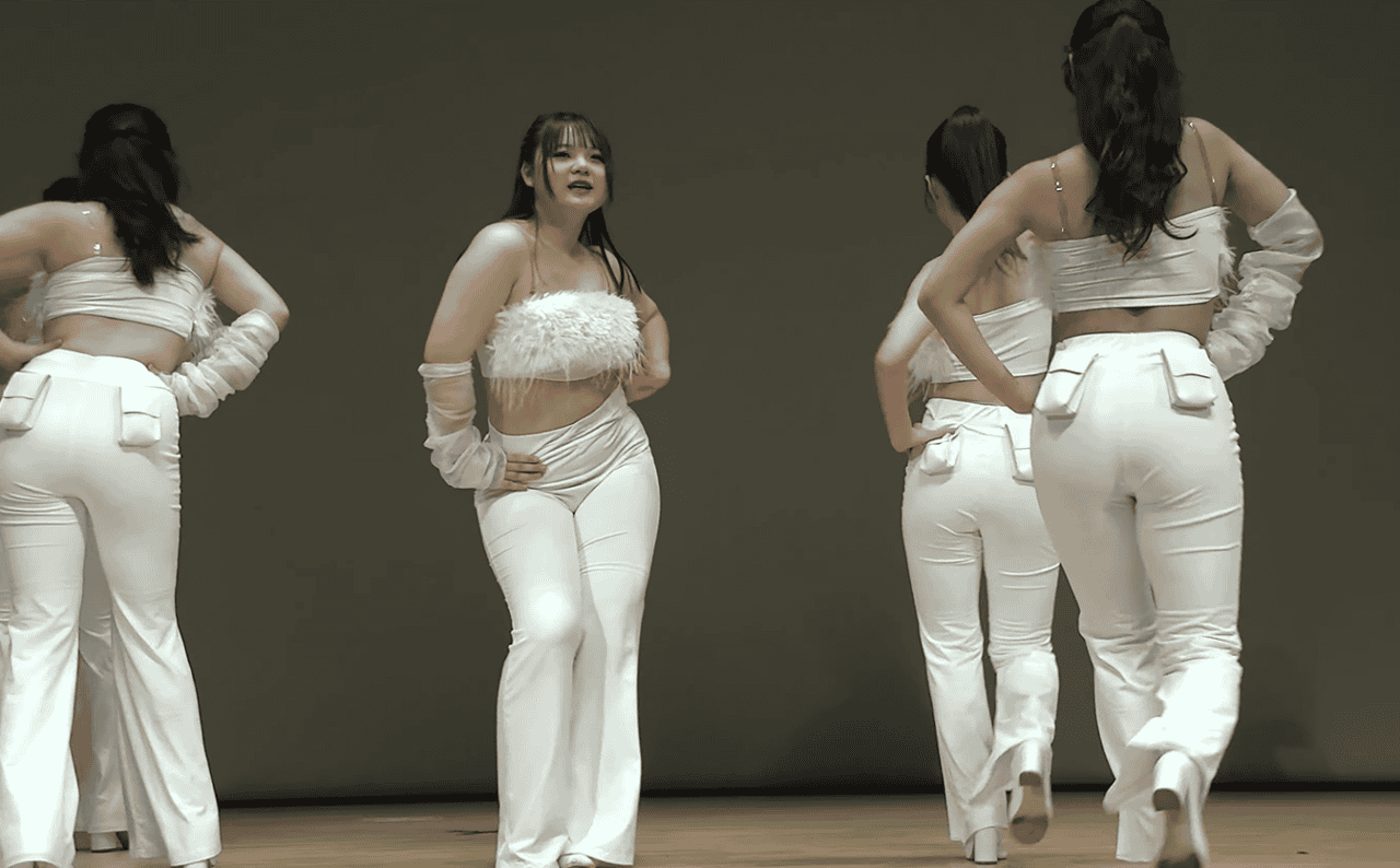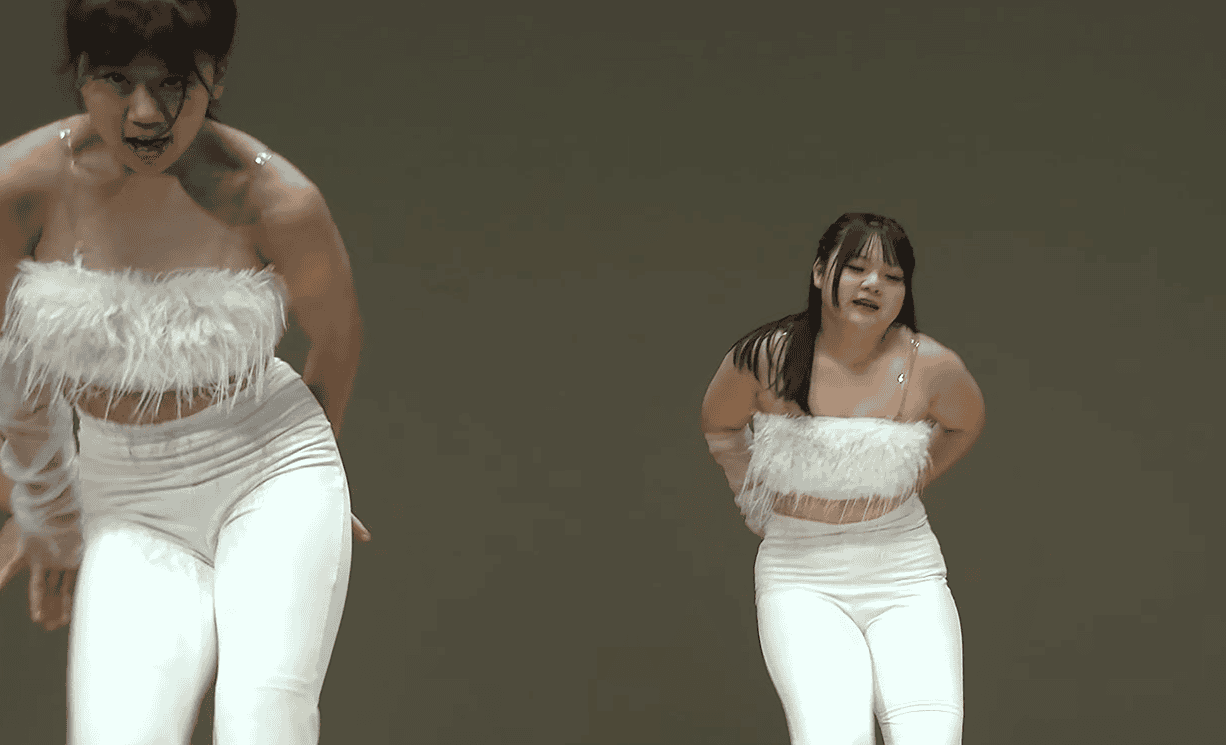 タイトルによると彼女たちはJKらしいです。ずいぶんとまたムッチムチなカラダをしていますね、、、そしてこの衣装、ピッチピチのピチピチすぎて、お腹や腰、お尻のお肉が食い込んじゃっていますがな。おまけにみんなワガママボディーなもんですから、エロいことこの上ないダンスとなっております。