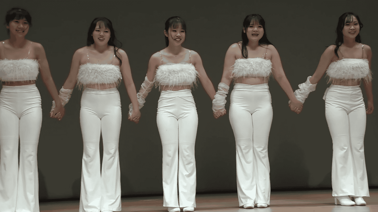 さて、彼女たちの中に、チューブトップ型の衣装がずり下がっちゃっている子が一人!ブラジャーではなさそうですがアンダーウェアが見えちゃっています!そこまで刺激的ではありませんが、ありがたいハプニングですので、ぜひ皆さん動画でご確認ください。
